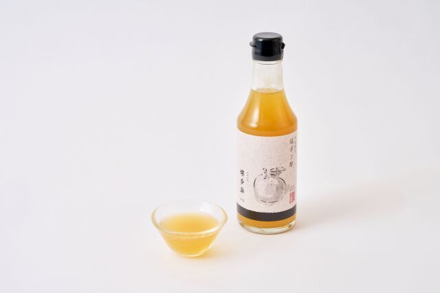 すだち、柚子、レモン、橙果汁の爽やかな酸味と、まろやかな塩味が料理の味を引き立てるやさしい味で、ポン酢の苦手な方にも、ぜひ一度おためしいただきたい一品です。